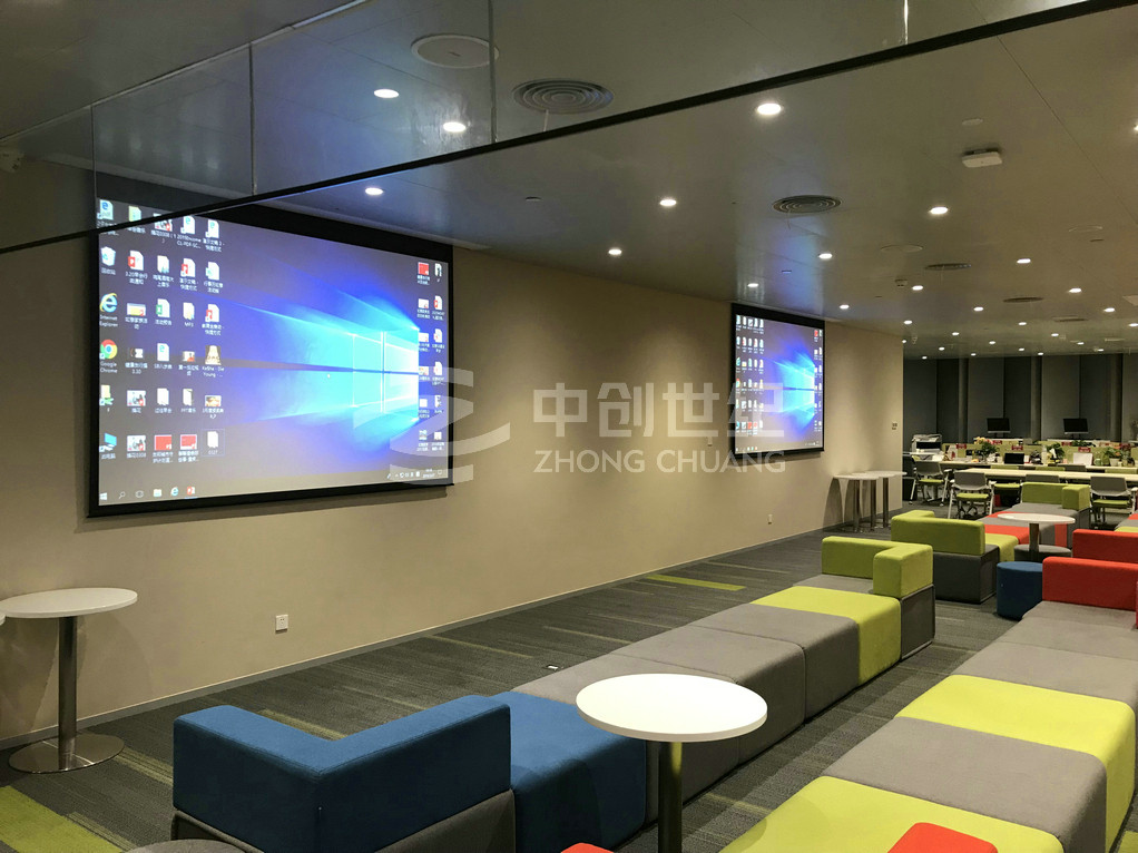 七個區域均可互聯互通,音視頻信號可以任意分配到不同的課室或區域,七個區域可同步播放顯示同一個信號源的信號,也可獨立顯示、播放不同信號源的信號,十一層與十層信號互通。